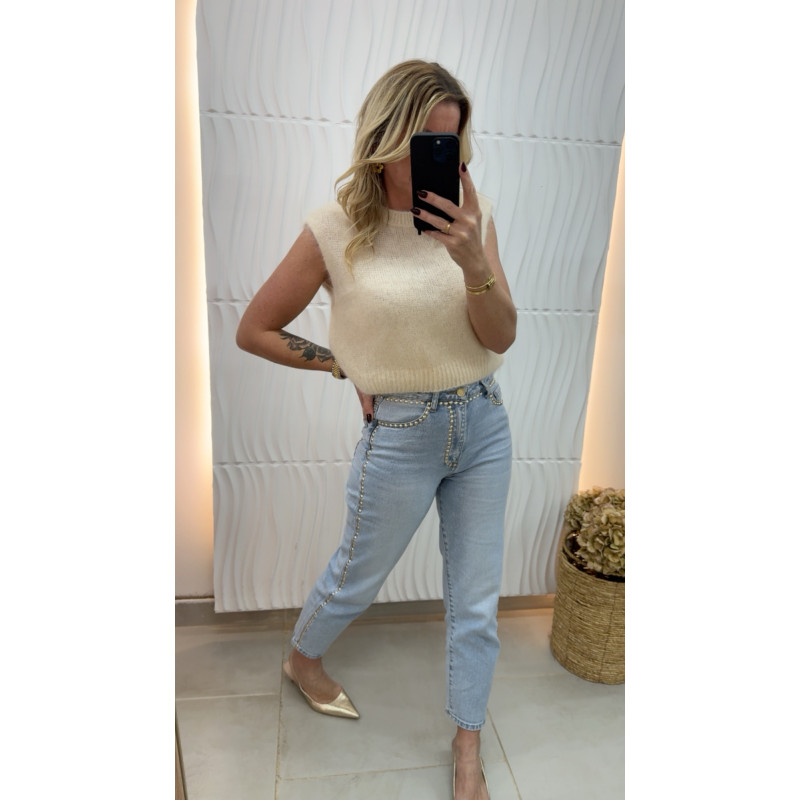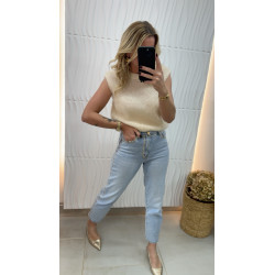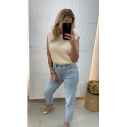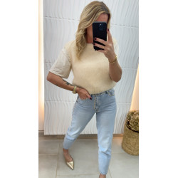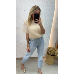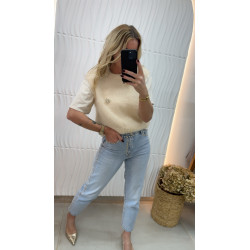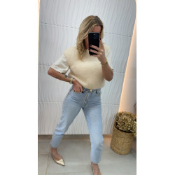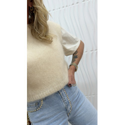 Pull court en mohair écru