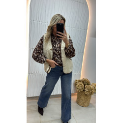 Gilet teddy écru sans manches